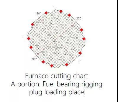 在新的文件中有對下圖的反應(yīng)堆堆芯中虛擬核燃料組件的解釋,這可能意味著在災(zāi)難發(fā)生時(shí),反應(yīng)堆中使用了沒有裝載核燃料的燃料組件(空組件),這些虛擬燃料組件僅作為位置保持器使用,可能作為設(shè)計(jì)的一部分來更好的控制堆芯中的核反應(yīng),下圖紅色方塊部分是東電公司使用的虛擬燃料組件。