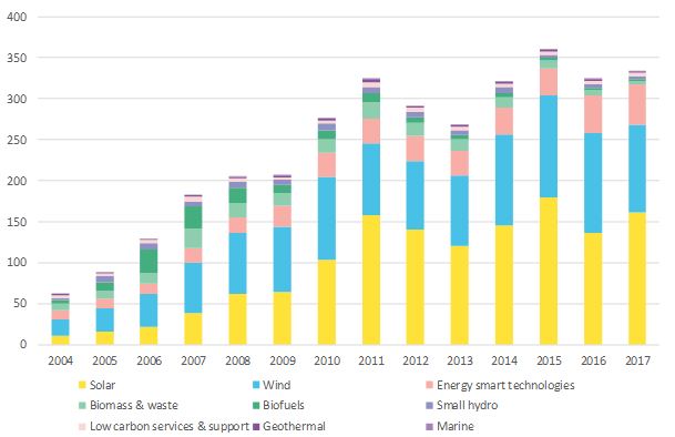 2018年全球清潔能源投資有望再度突破3300億美元