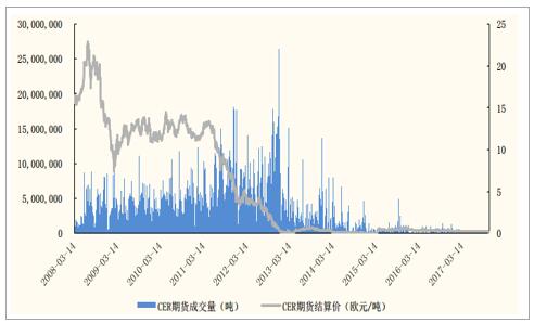 CER期貨成交量和結(jié)算價(jià)