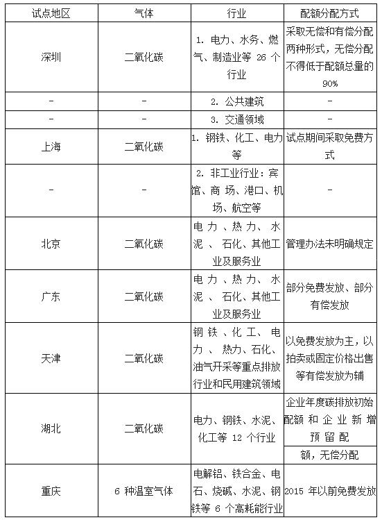 七試點(diǎn)行業(yè)覆蓋范圍和配額分配方式