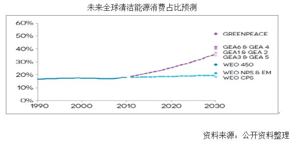 未來全球能源消耗將以可再生能源為主。國際能源署的有關(guān)預(yù)測也給出了相似的結(jié)果:2030 年全球清潔能源占比將超過30%。