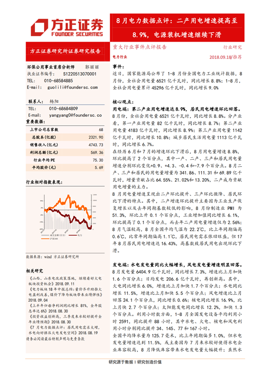 8月電力數(shù)據(jù)點(diǎn)評(píng):二產(chǎn)用電增速提高至8.9% 電源裝機(jī)增速繼續(xù)下滑
