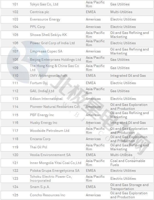 普氏2018年全球能源公司250強(qiáng)榜單出爐(附全名單)