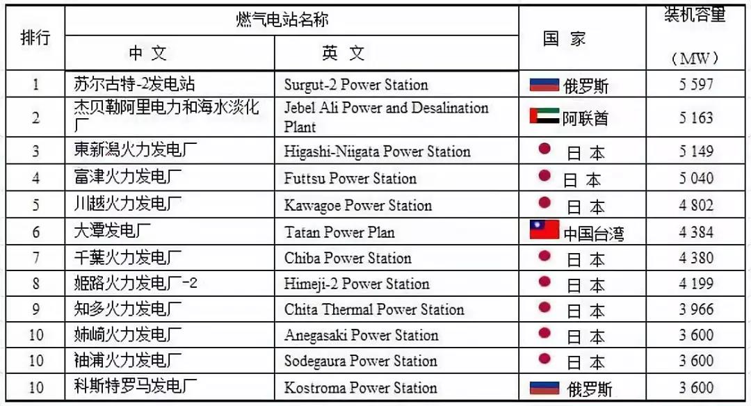 燃?xì)獍l(fā)電量最多的國(guó)家是美國(guó)、其次是俄羅斯,但是燃?xì)獍l(fā)電站最多的是日本,日本早在20世紀(jì)70年代就開(kāi)始利用進(jìn)口的液化天然氣(LNG)發(fā)電。