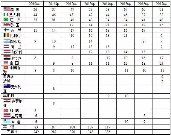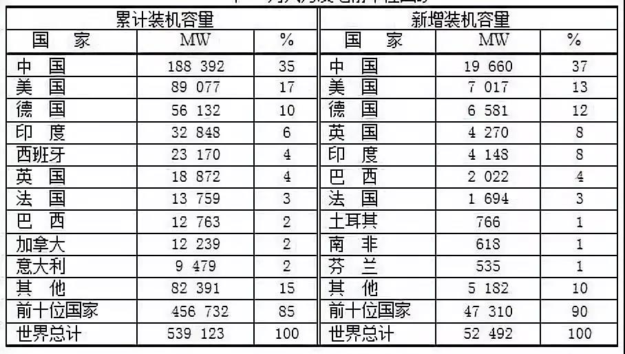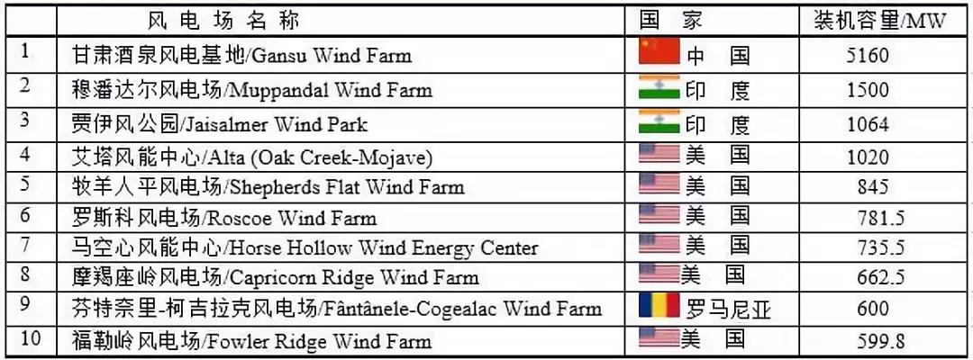 2017年12月風(fēng)力發(fā)電前十位國(guó)家