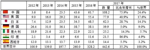 根據(jù)《Renewables 2018 Global Status Report,REN21》報(bào)告,2017年裝機(jī)容量增加到539GW,年增加52GW。