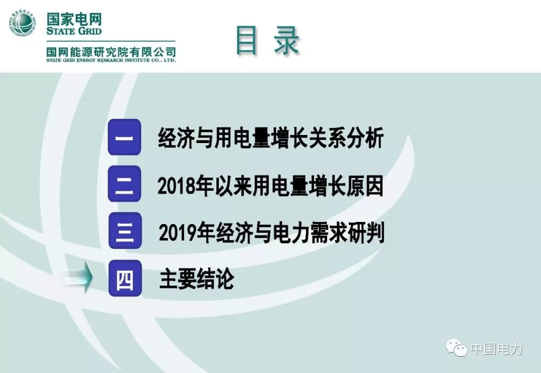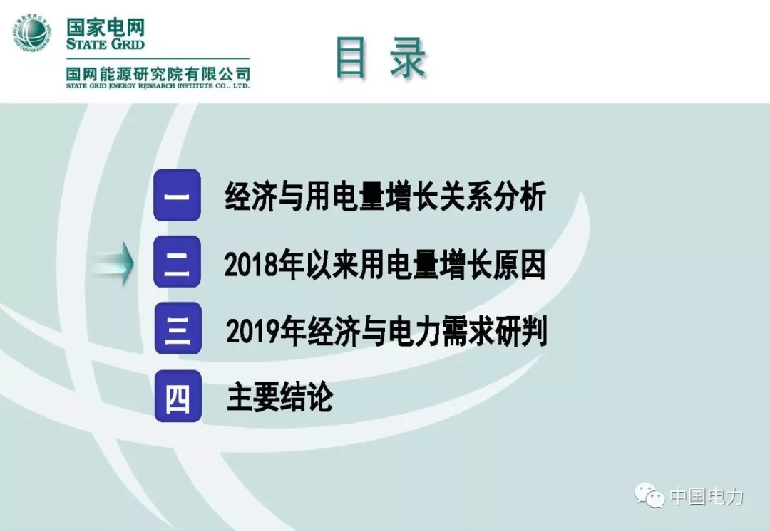 報告主要分4個部分:1.經(jīng)濟與用電量增長關(guān)系分析;2.2018年以來用電量增長原因;3.2019年經(jīng)濟與電力需求研判;4.主要結(jié)論。