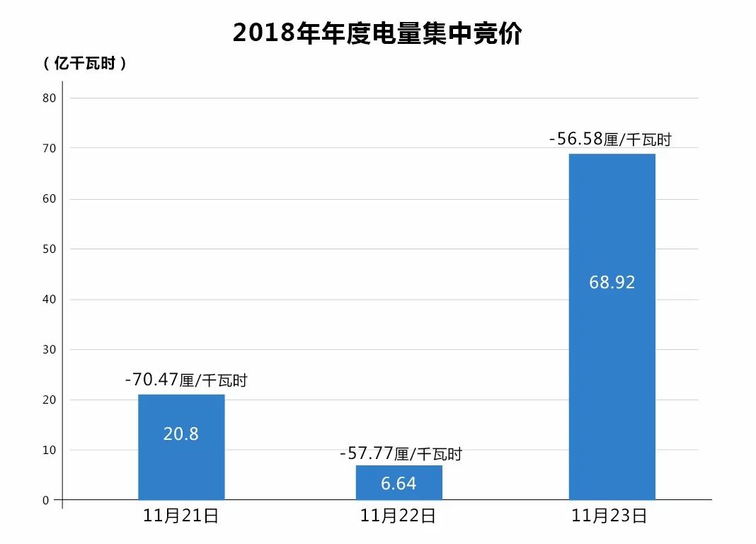 為期三天的在線交易,分別成交電量為20.8億千瓦時、6.64億千瓦時和68.92億千瓦時,總計96.36億千瓦時。2018年度電量集中競價平均價差為5.97分。