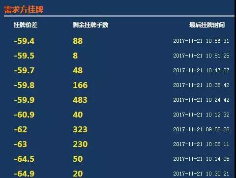 隨著時(shí)間推移,盤上需求方掛出2手5.99分,瞬間被供應(yīng)方摘得。后來需求方慢慢領(lǐng)悟到供應(yīng)方的策略,于是供應(yīng)方在盤上的價(jià)格紛紛跟至6分左右這個(gè)區(qū)域。