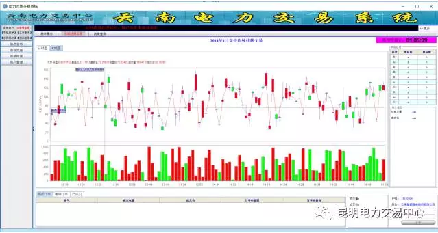 中間區(qū)域是整個市場的量價統(tǒng)計(jì)信息、K線圖(什么是K線?小編已經(jīng)為您準(zhǔn)備好了復(fù)習(xí)資料,昆明電力交易中心發(fā)布全國首個日前電量交易K線;右上角的買1、買2、買3、買4、買5,賣1、賣2、賣2、賣4、賣5,相信你一定不陌生,展示的是當(dāng)前最優(yōu)先買進(jìn)、賣出的前5位申報(bào)價格以及對應(yīng)的電量數(shù);再看下方的委托訂單、撤銷訂單、已成交、下單……一個個熟悉的字眼,這不就是股票操作嗎?您猜對了,連續(xù)掛牌就是參照股票連續(xù)競價規(guī)則,結(jié)合電力交易實(shí)際演化而來的全新電力交易品種。