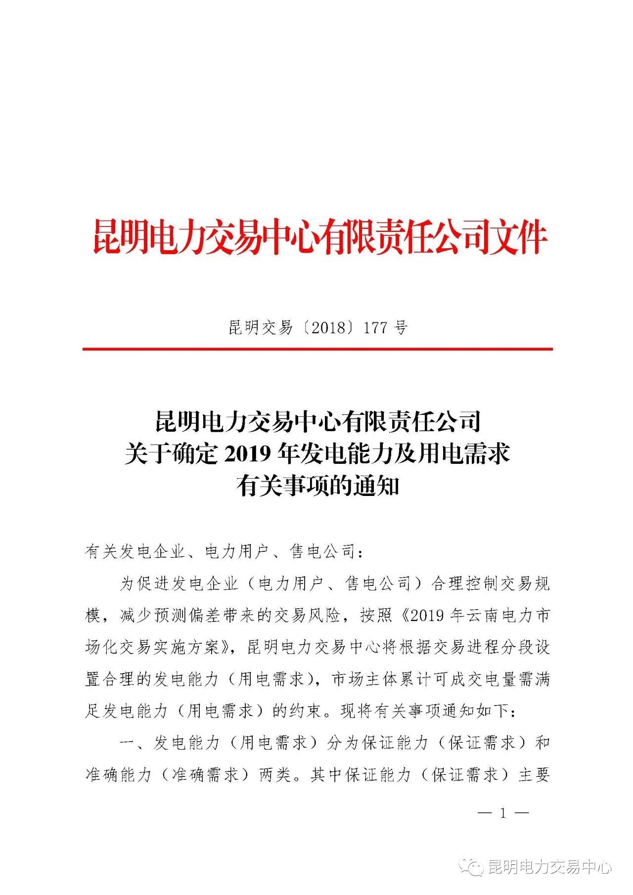 據(jù)悉,昆明電力交易中心日前發(fā)布了《關(guān)于確定2019年發(fā)電能力及用電需求有關(guān)事項(xiàng)的通知》,電力用戶、售電公司需每月20日前在云南電力交易系統(tǒng)中申報(bào)次月準(zhǔn)確需求,經(jīng)交易中心校核確認(rèn)后生效。