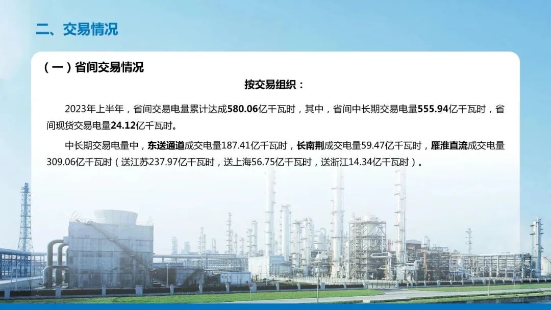 上半年,省內(nèi)交易累計(jì)成交電量129338億千瓦時(shí)。