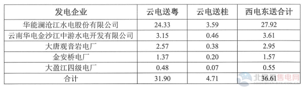 西電東送市場方面,2月份框架協(xié)議內西電東送電量為46億千瓦時,扣除溪洛渡送廣東7.9億千瓦時后剩余38.1億千瓦時(其中,送廣東33.2億千瓦時,送廣西4.9億千瓦時)。根據優(yōu)先電廠發(fā)電需求安排西電東送電量約1.49億千瓦時平衡,剩余36.6億千瓦時(其中,送廣東31.9億千瓦時,送廣西4.7億千瓦時)。根據政府相關文件按比例安排2月框架協(xié)議內西電東送電量分配如下表所示,