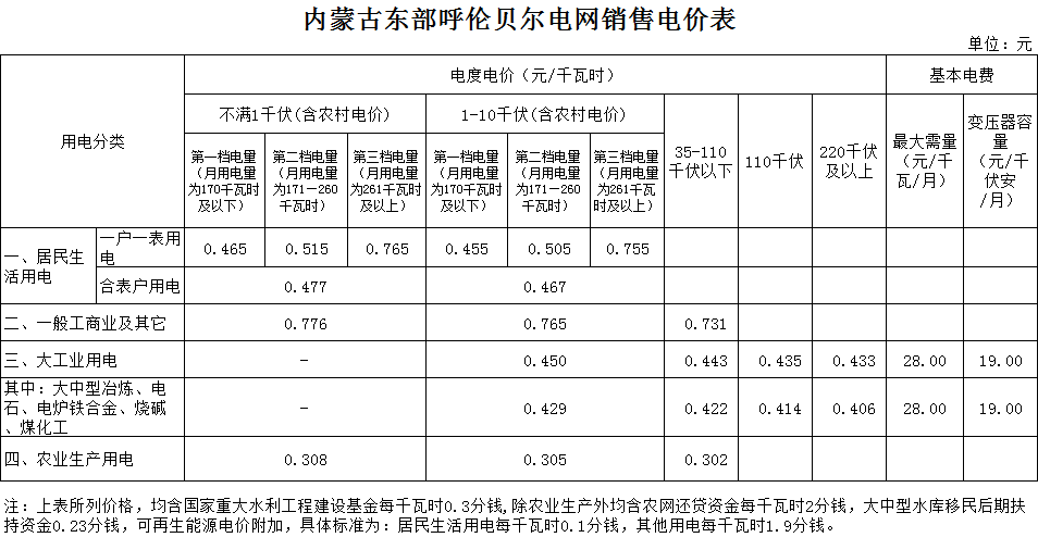 3.內(nèi)蒙古東部呼倫貝爾電網(wǎng)銷售電價(jià)表