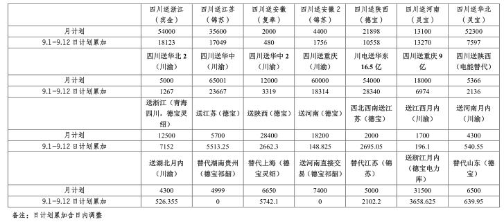 四川9月第四周二次外送情況信息披露:送浙江(賓金)月計(jì)劃10億千瓦時(shí)