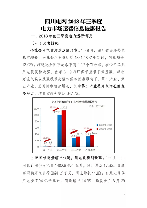 信息披露 | 四川2018年三季度電力生產(chǎn)及市場運(yùn)營信息披露報告