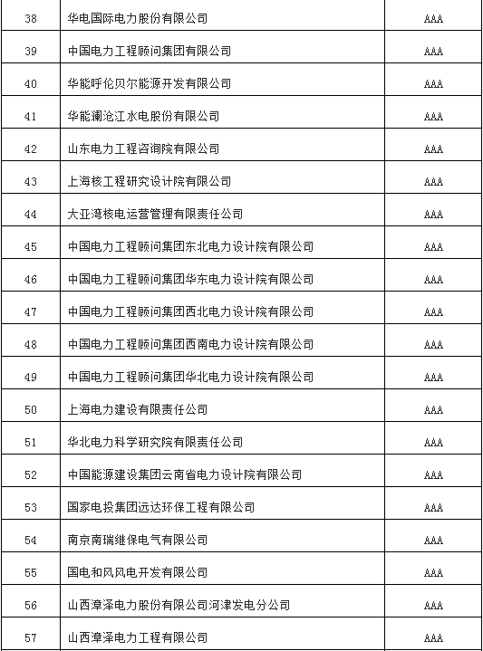 電力行業(yè)2017年信用企業(yè)評價結果公示:101個AAA級電力企業(yè)