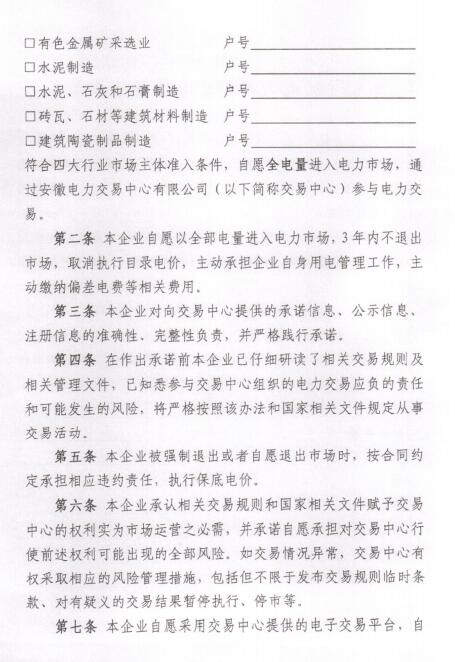 四大行業(yè)用戶可自愿選擇是否參與全電量交易市場,選擇參與全電量交易市場后,原則上3年內(nèi)不得退出全電量交易市場。自愿或強(qiáng)制退出的,原則上3年內(nèi)不得進(jìn)入電力市場,并執(zhí)行保底供電價格。