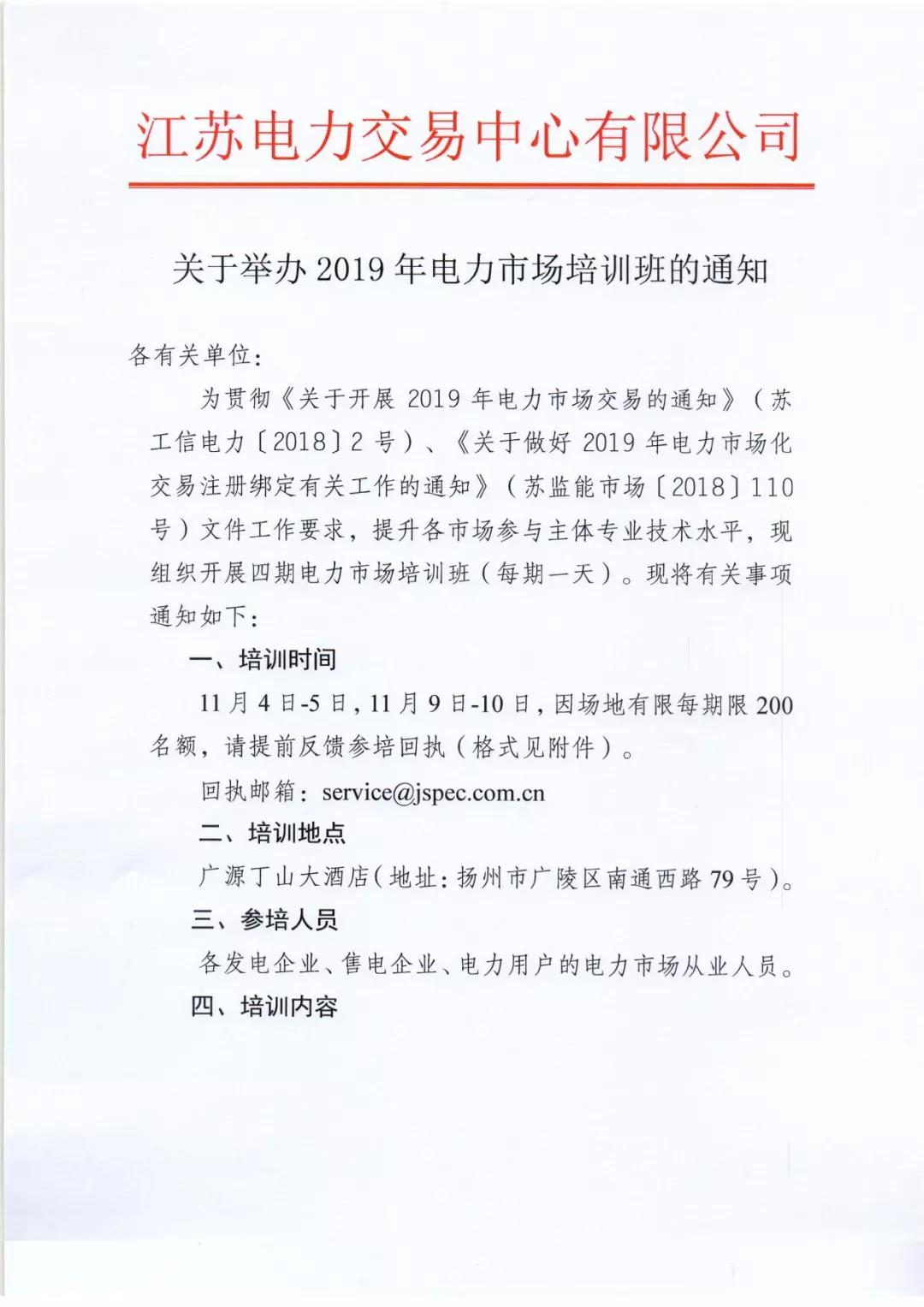 江蘇關(guān)于舉辦2019年電力市場培訓(xùn)班的通知