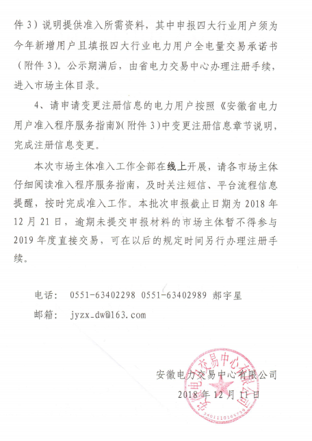 本批次申報(bào)截止日期為2018年12月21日,逾期未提交申報(bào)材料的市場(chǎng)主體暫不得參與2019年度直接交易。
