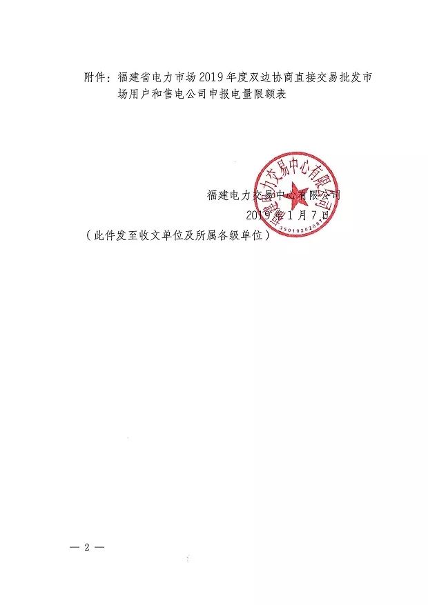 福建電力交易中心日前發(fā)布了《關(guān)于發(fā)布2019年度雙邊協(xié)商直接交易申報電量限額的通知》