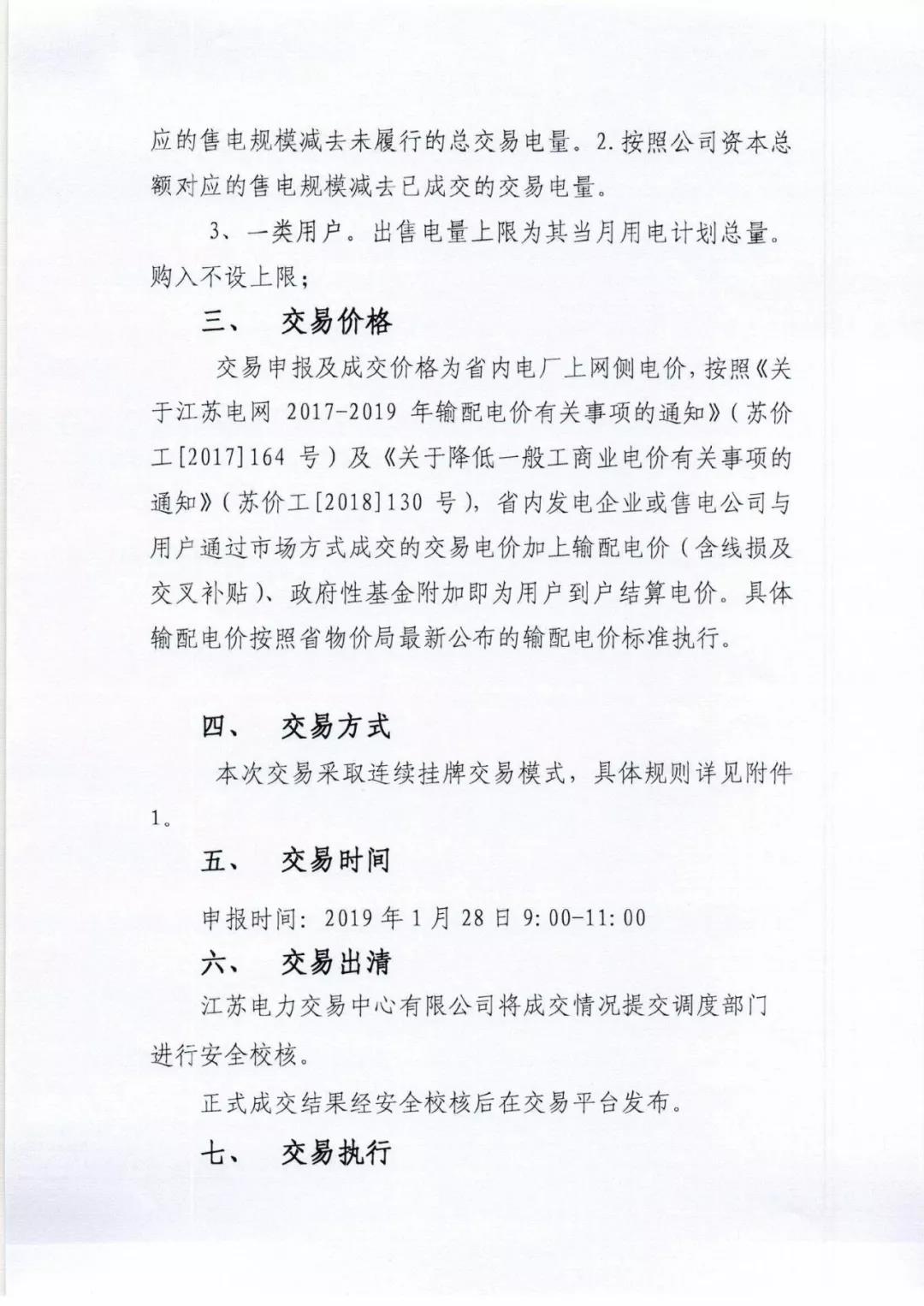 2019年1月江蘇電力市場(chǎng)月內(nèi)市場(chǎng)化交易公告