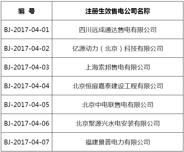 北京電力交易中心關(guān)于售電公司公示結(jié)果的公告