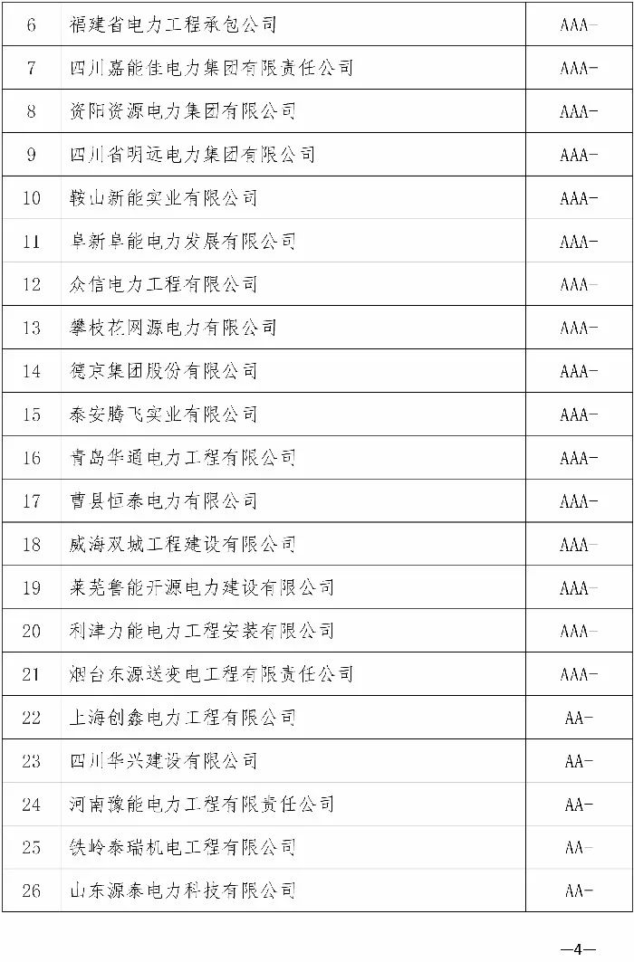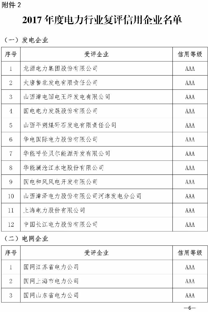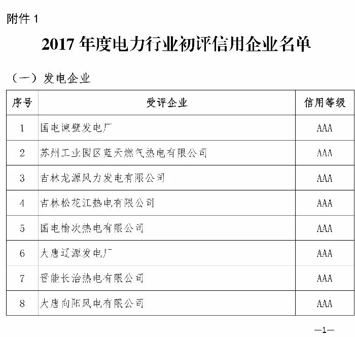 103家企業(yè)獲評2017年度電力行業(yè)信用評價(jià)AAA等級(附詳單)