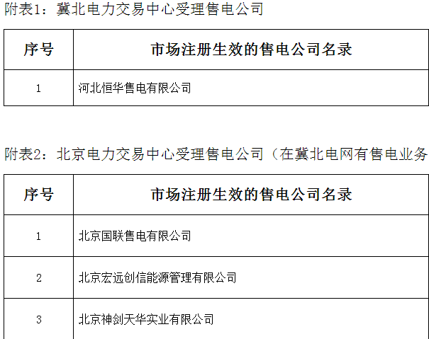 冀北新增19家售電公司及業(yè)務(wù)范圍變更的8家售電公司