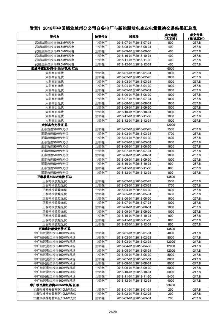 甘肅電力交易中心日前發(fā)布《2018年甘肅蘭鋁、金川集團(tuán)、玉門石油自備電廠與新能源發(fā)電企業(yè)電量置換交易結(jié)果公告(2018年1月23日)》,本次交