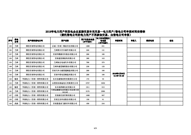 甘肅2018年電力用戶與發(fā)電企業(yè)電力直接交易補(bǔ)充交易公告:附時(shí)間安排表