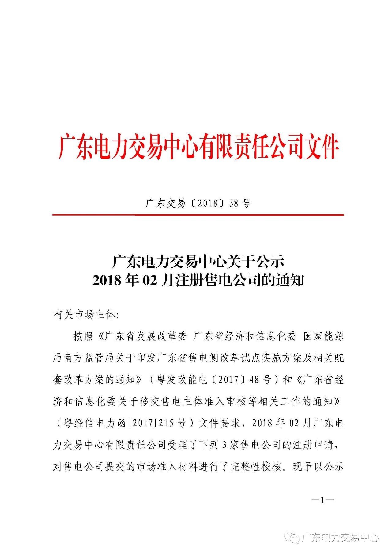 為做好售電公司的準入審核等相關(guān)工作,廣東電力交易中心現(xiàn)對2018年02月注冊申請的3家售電公司進行公示,公示正文如下:具體通知請各市場主