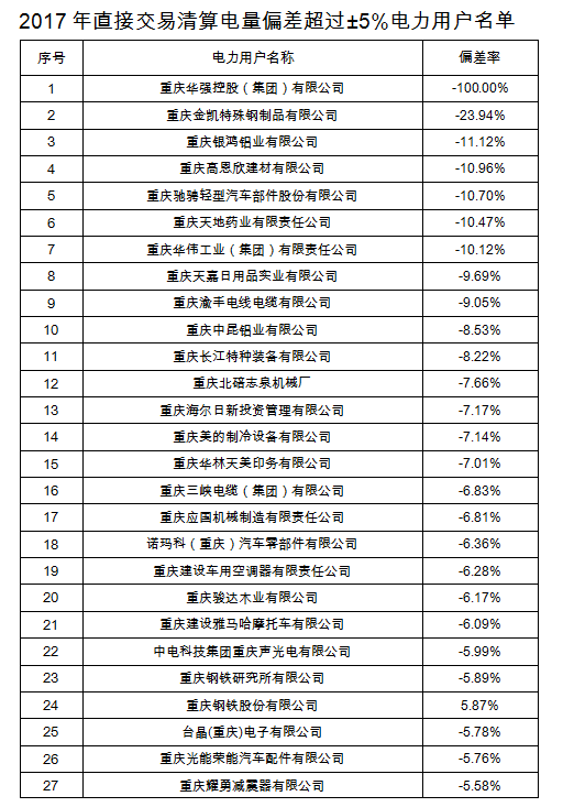 重慶售電公司福利!豁免2017年度直接交易相關(guān)主體偏差考核(附企業(yè)名單)