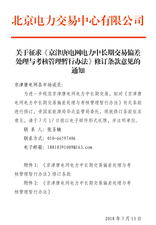 北京電力交易中心日前發(fā)布了關(guān)于征求《京津唐電力中長(zhǎng)期交易偏差處理與考核管理暫行辦法》修訂條款意見的通知,此次修訂的條款為第十六條:...