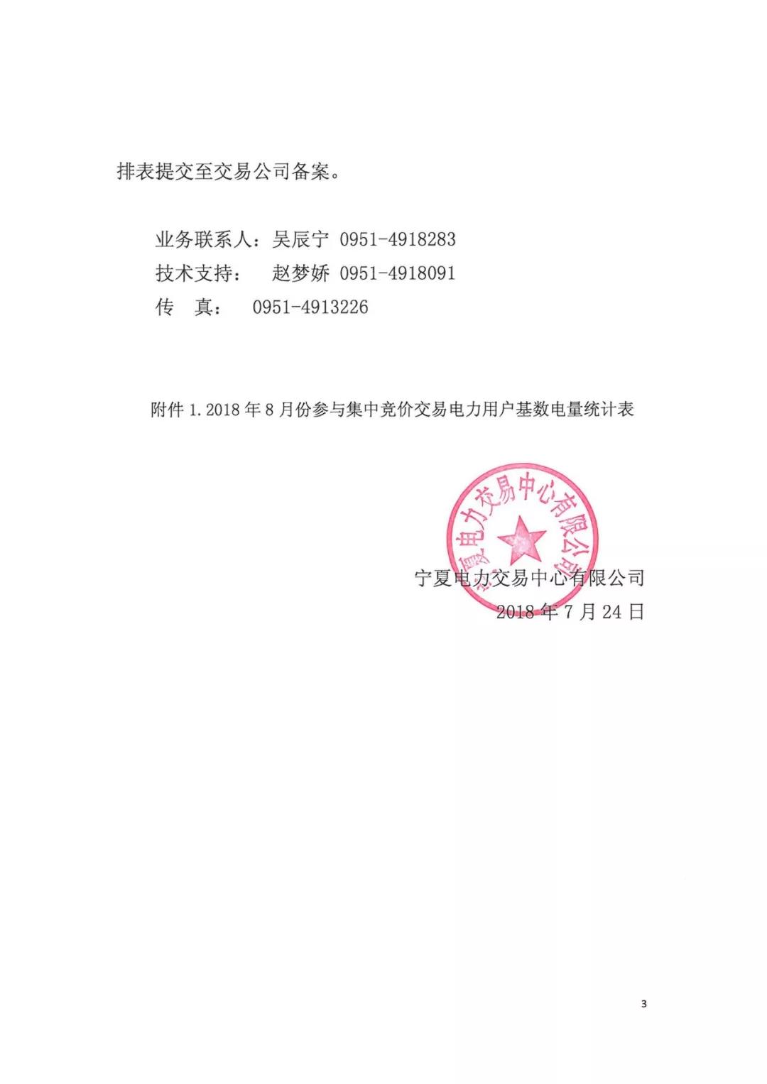 寧夏關(guān)于開展2018年8月份集中競(jìng)價(jià)交易的公告
