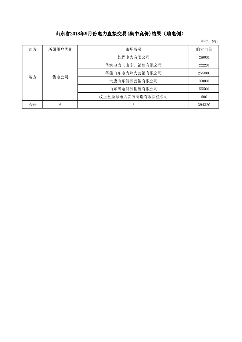 山東2018年9月份電力直接交易(集中競價)結果:出清價391.5元/兆瓦時