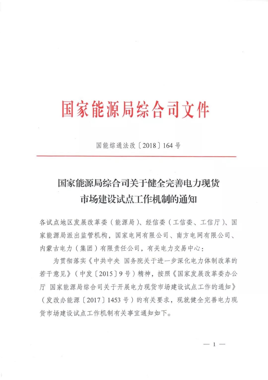 國家能源局綜合司關于健全完善電力現(xiàn)貨市場建設試點工作機制的通知