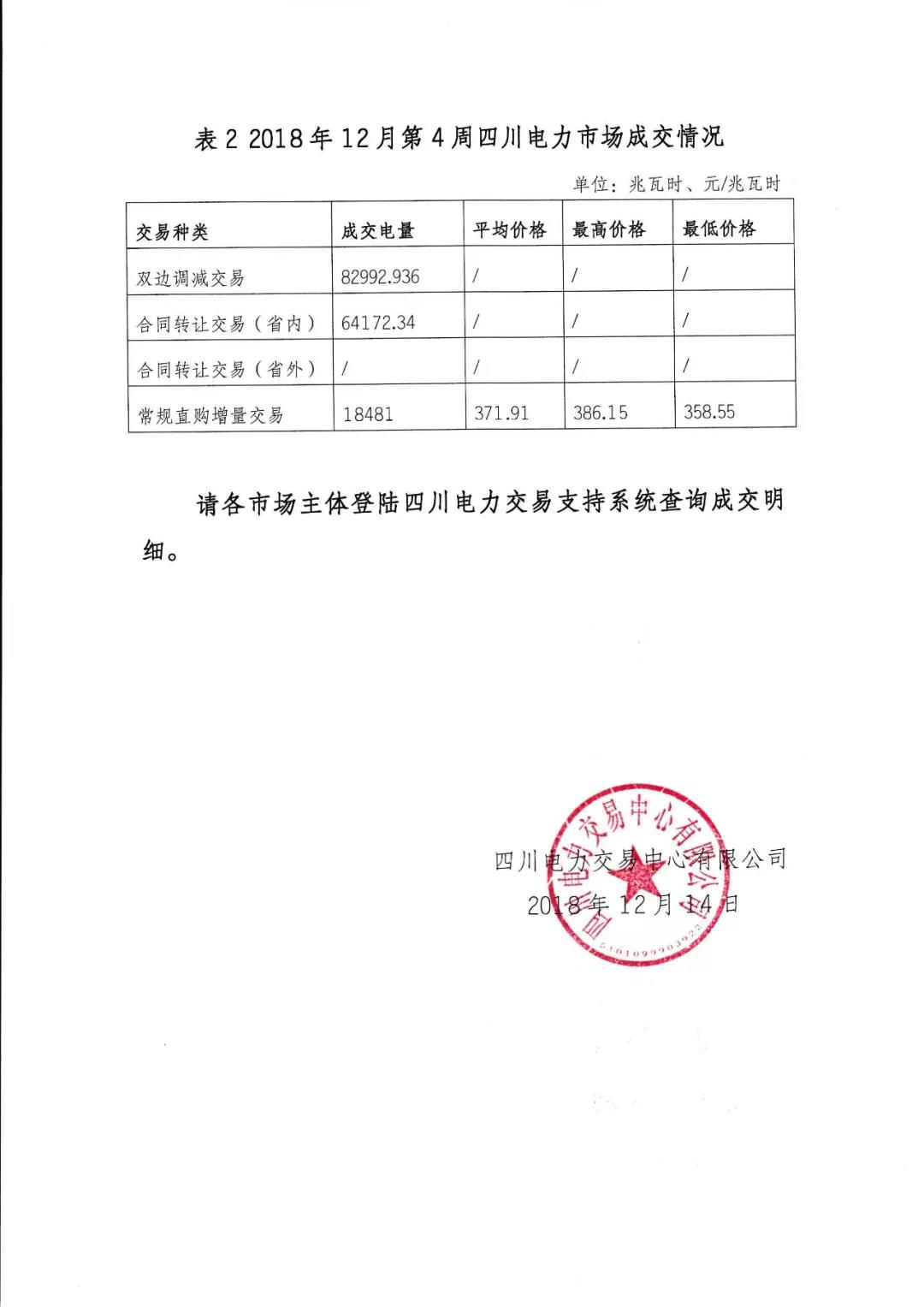 公告 | 四川關于2018年12月第4周周交易結果的公告
