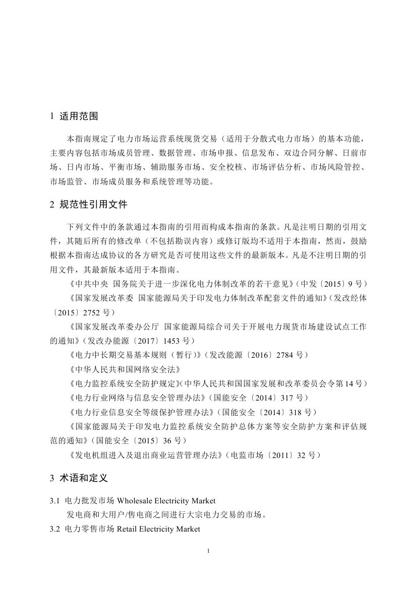國家發(fā)展改革委辦公廳 國家能源局綜合司《關(guān)于印發(fā)電力市場運營系統(tǒng)現(xiàn)貨交易和現(xiàn)貨結(jié)算功能指南(試行)的通知》。