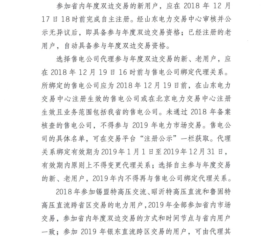 山東電力交易中心發(fā)布了《關(guān)于開展2019年新增電力市場交易用戶自主注冊及售電公司與電力用戶代理關(guān)系綁定工作的通知》