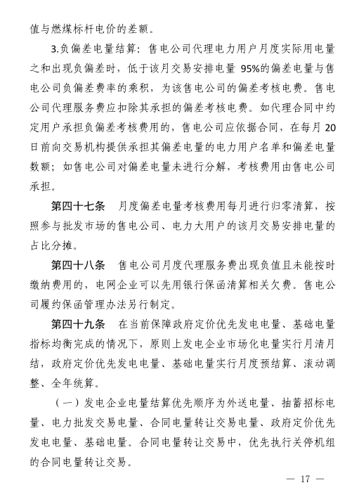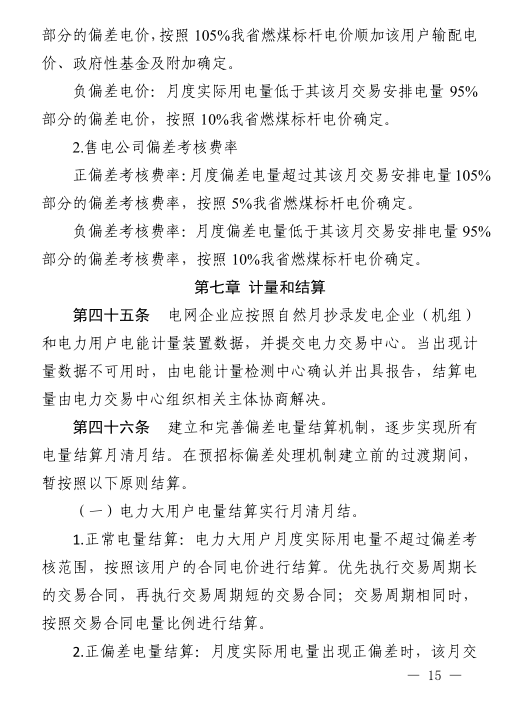 參與批發(fā)交易的售電公司、電力大用戶月度偏差電量占其該月交易安排電量在±5以外的電量,±5%以內(nèi)(含±5%)的部分免于考核??己藢?duì)象為參與批發(fā)交易的電力大用戶、售電公司。