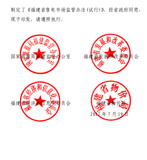 福建省售電市場監(jiān)管辦法(試行)印發(fā)