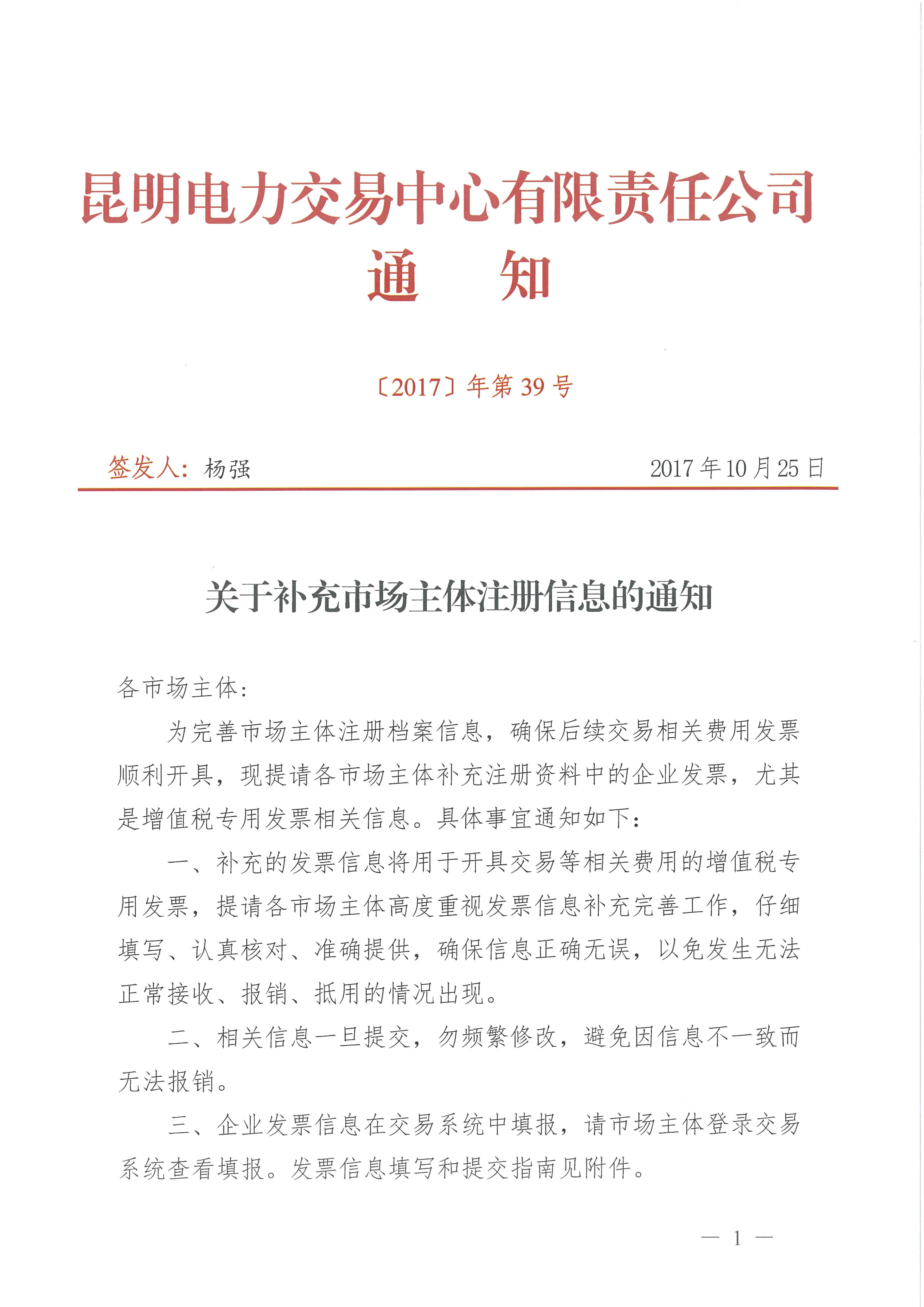 昆明電力交易中心關于補充市場主體注冊信息的通知