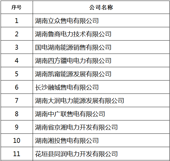 湖南省第二批57家售電公司公示名單公布!