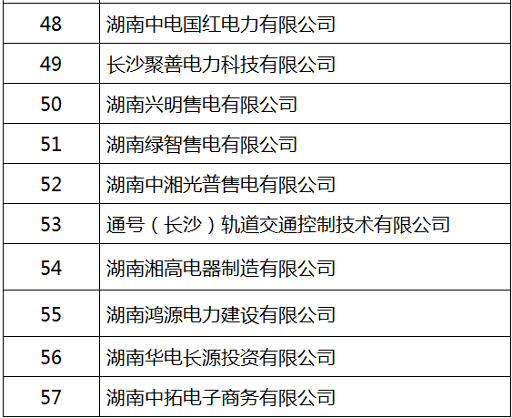 湖南省能源局11月14日發(fā)布了關(guān)于公示擬列入湖南省售電公司目錄第二批企業(yè)名單的通知,通知中對符合條件的57家企業(yè)列入湖南省售電公司目錄,公示期為2017年11月14日至12月14日。至此,詳情如下: