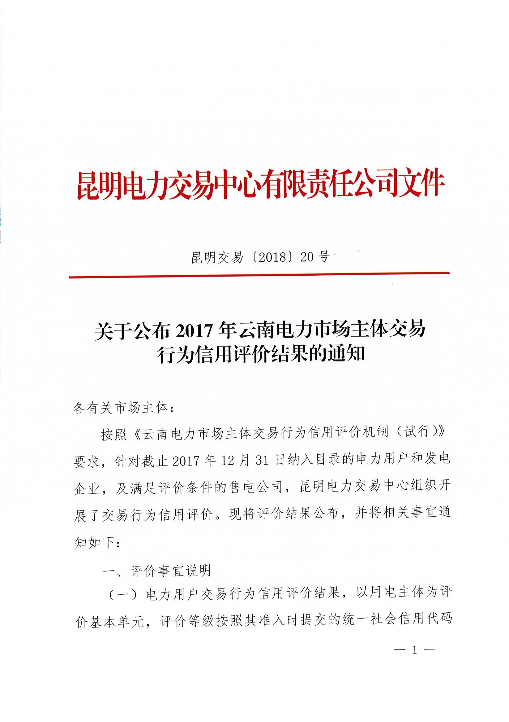 昆明電力交易中心日前公布了《2017年云南電力市場主體交易行為信用評(píng)價(jià)結(jié)果》,針對(duì)截止2017年12月31日納入目錄的電力用戶和發(fā)電企業(yè),及滿