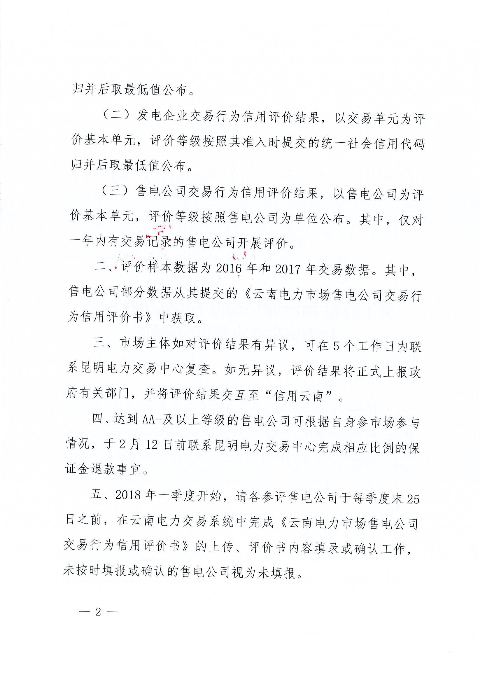 達(dá)到AA-及以上等級(jí)的售電公司可根據(jù)自身參與市場參與司,于2月12日前聯(lián)系昆明電力交易中心完成相應(yīng)比例的保證金退款事宜。