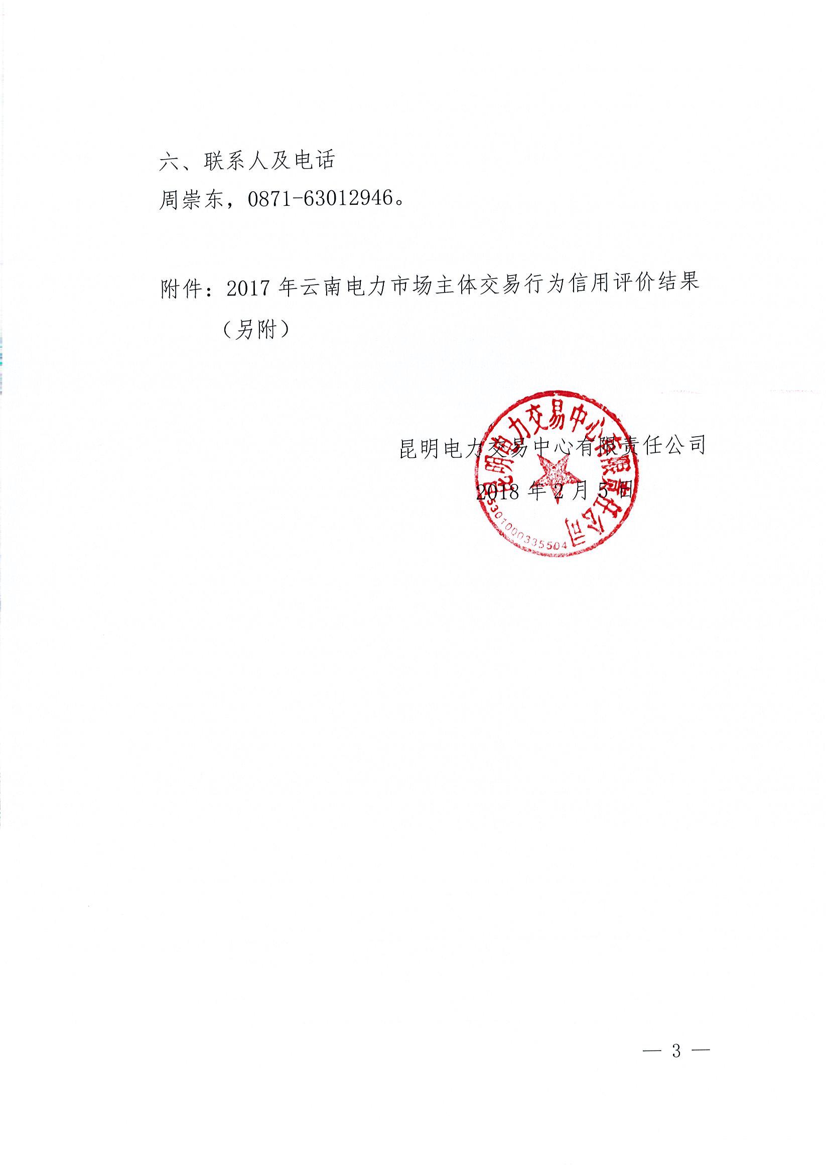 2017 年云南電力市場主體交易行為信用評(píng)價(jià)結(jié)果