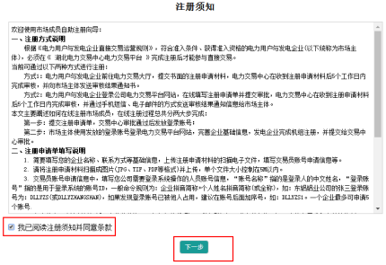 打開注冊須知后,需完整閱讀平臺使用協(xié)議后,勾選“我已閱讀注冊須知并同意條款”,并點(diǎn)擊【下一步】。