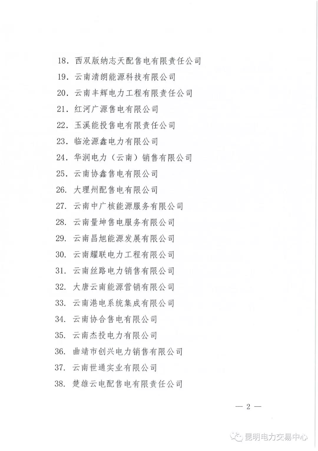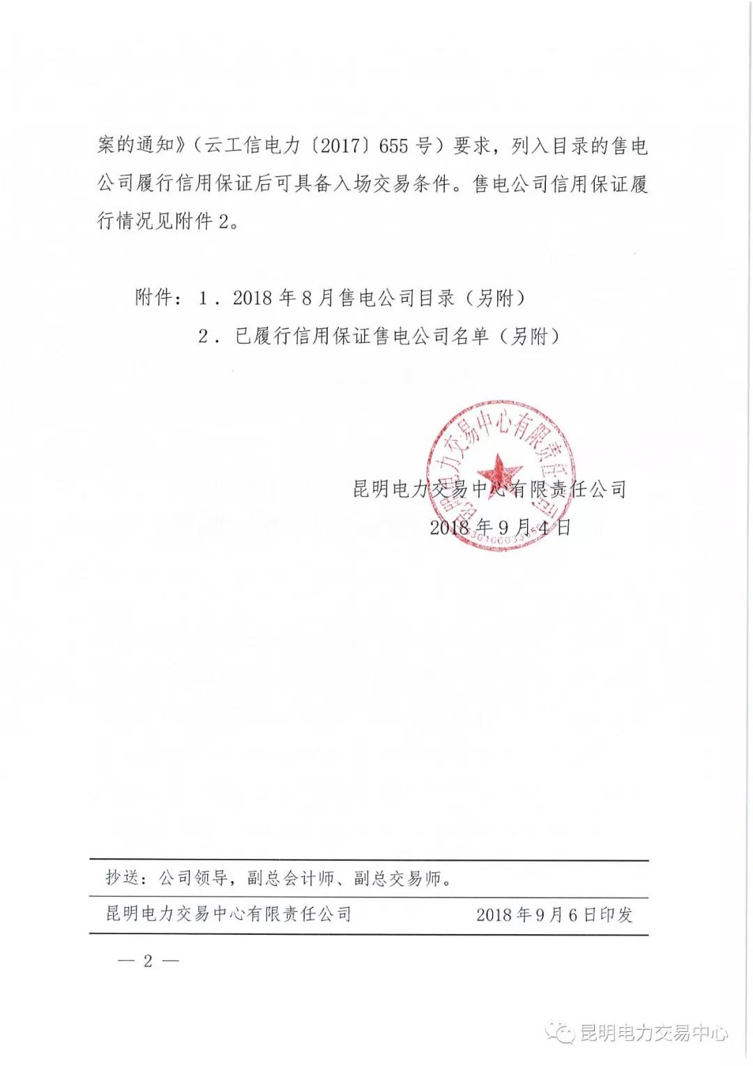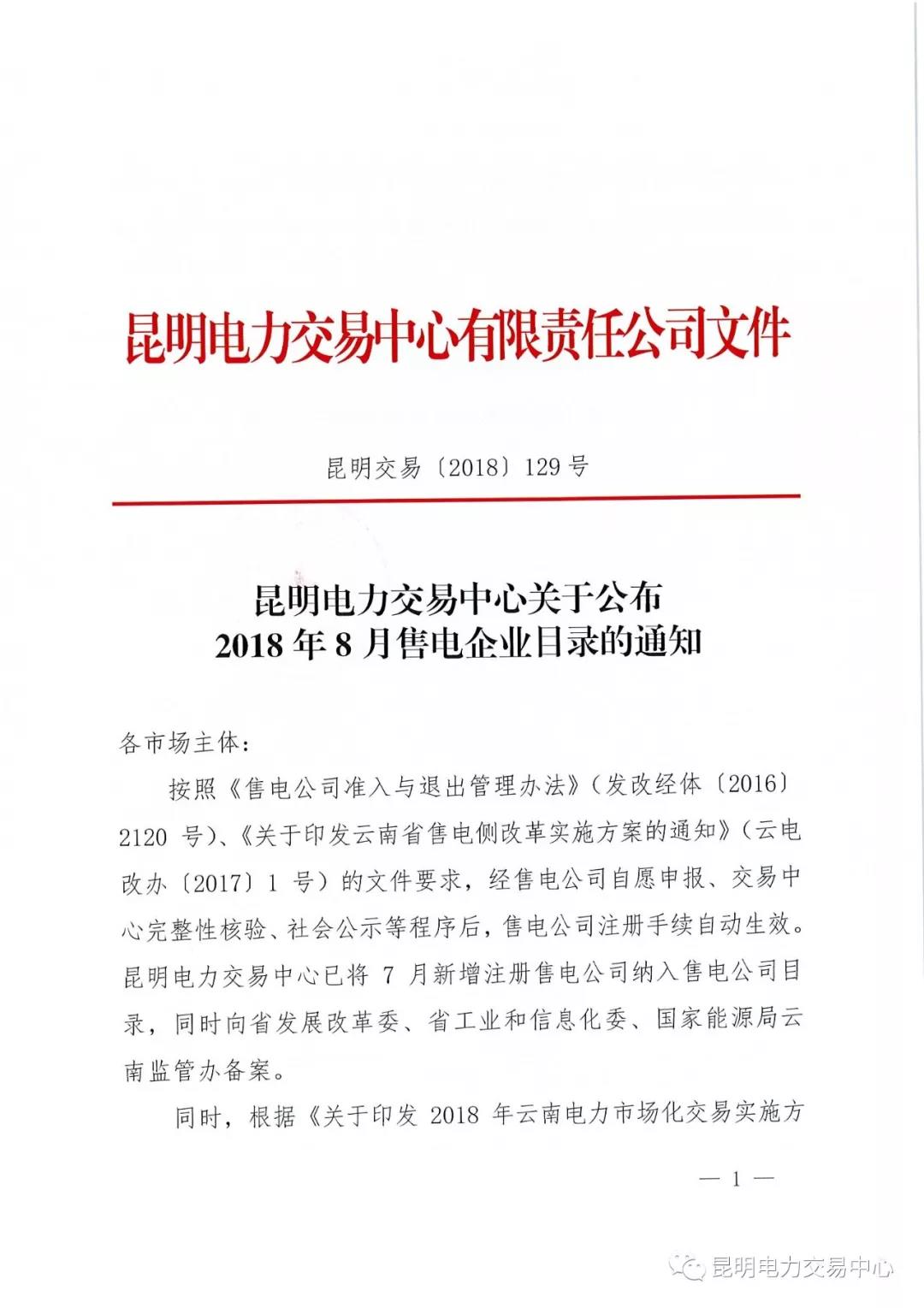 昆明電力交易中心關(guān)于公布2018年8月售電企業(yè)目錄的通知